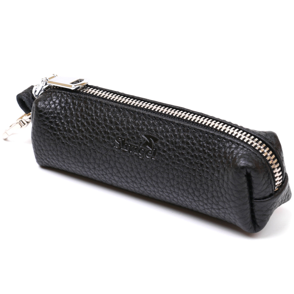 Отличная ключница для безопасного хранения ключей, при этом они точно не поцарапают содержимое сумки или кармана. Выполнено изделие из натуральной кожи высокого класса с улучшенными показателями стойкости к износу. Ключи крепятся на металлическое кольцо внутри изделия, сам аксессуар закрывается на молнию. Цвет – классический черный.