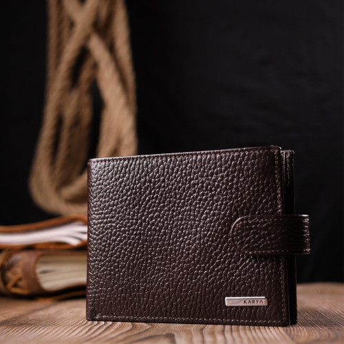 Вместительное мужское портмоне с хлястиком из натуральной кожи KARYA 21081 Коричневый