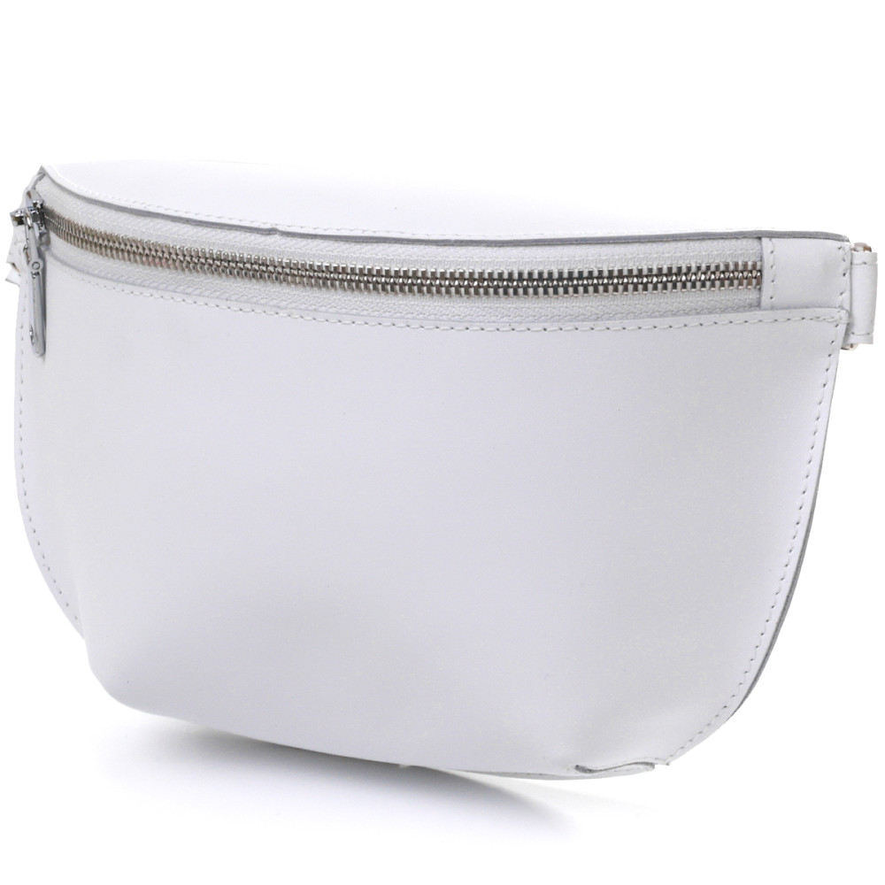 Превосходная женская сумка на пояс для повседневного использования или для путешествий. С такой сумкой Ваши руки будут свободны, а телефон и прочеи ценные вещи всегда при себе. Сделана бананка из натуральной кожи высокого класса и повышенной стойкости к износу. Цвет изделия – универсальный белый, фактура – гладкая и приятная на ощупь.
