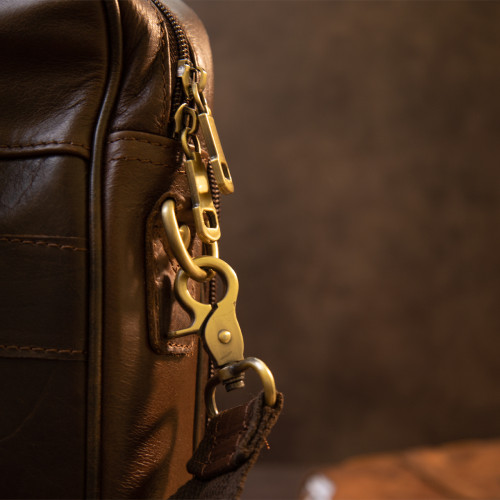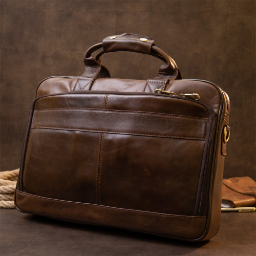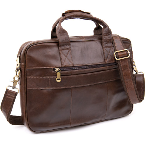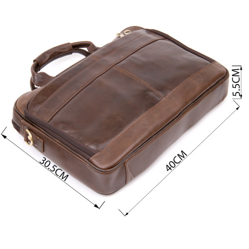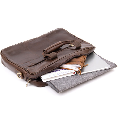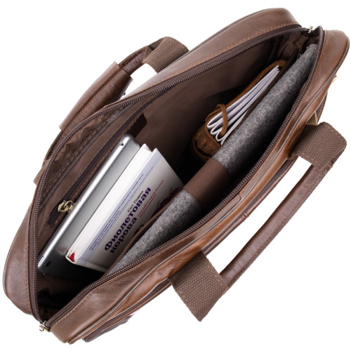 Солидная сумка делового человека. В сумку поместится ноутбук и другие документы или папки с деловыми бумагами. Изделие очень функциональное. Сумка выполнена в мягкой коже. Носить ее вы можете как в руках (ручки скрепляются накладкой с кнопками), так и на плече. Сумка совсем неприхотлива в уходе. Поверхность кожи гладкая и блестящая. В сочетании с качественной фурнитурой сумка прослужит вам очень долго и станет вашим идеальным помощником на встречах и совещаниях. Сумка станет лучшим подарком для любого делового мужчины.