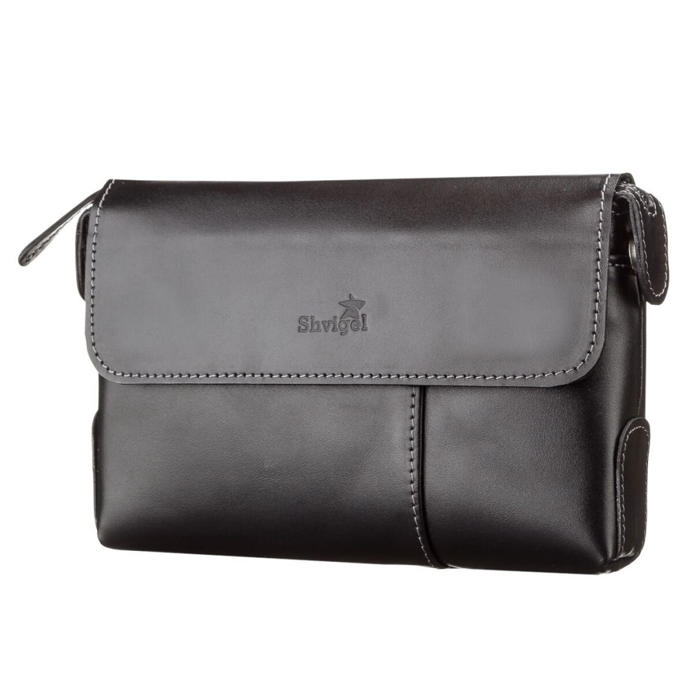Мужской клатч SHVIGEL 11084 кожаный Черный