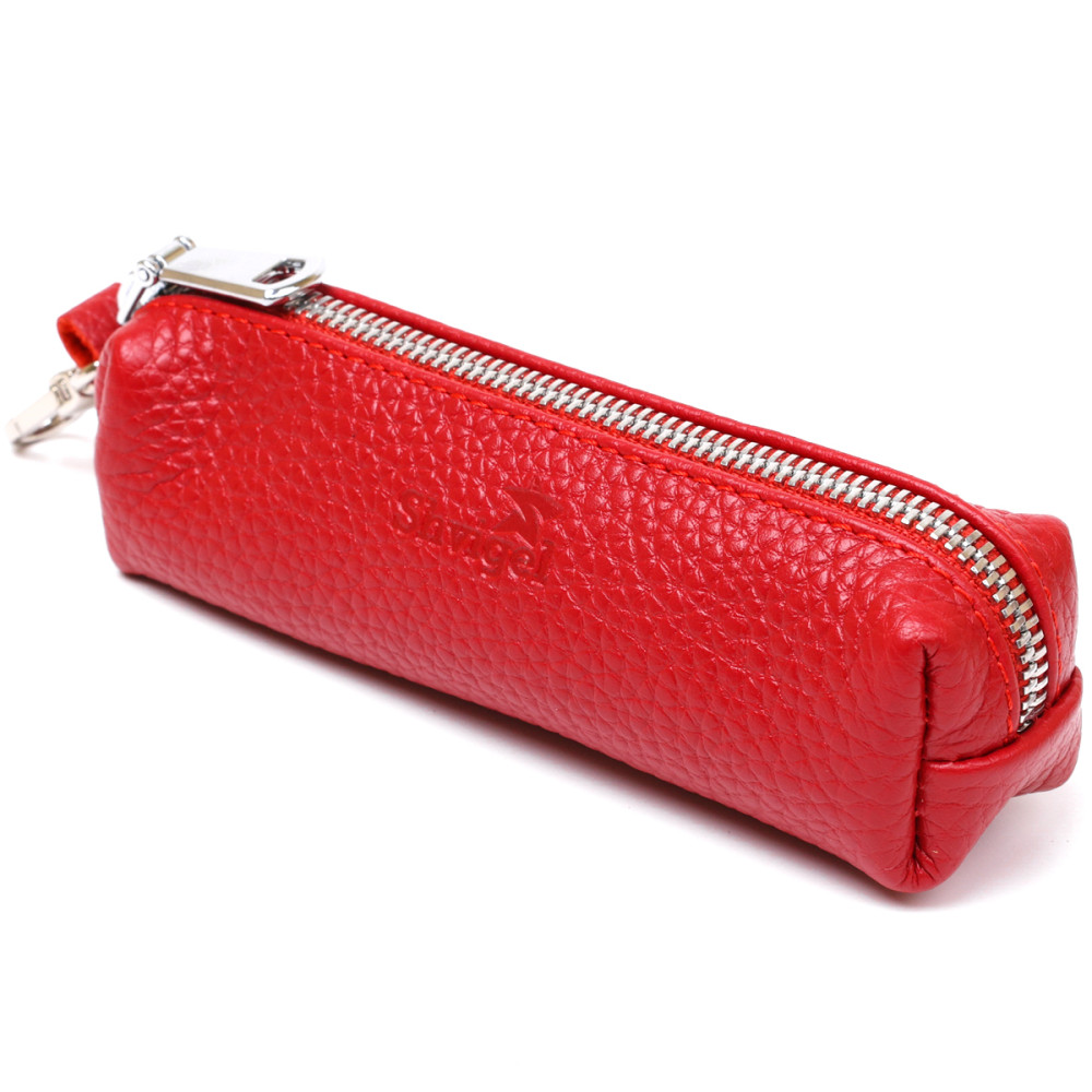 Красива та практична жіноча ключниця у насиченому червоному кольорі. Має зернисту фактуру, яка дуже приємна на дотик. Фурнітура зроблена у кольорі під срібло. Матеріал виготовлення – натуральна шкіра високої якості та відмінної опірності до зносу. З таким аксесуаром ключі будуть надійно заховані.