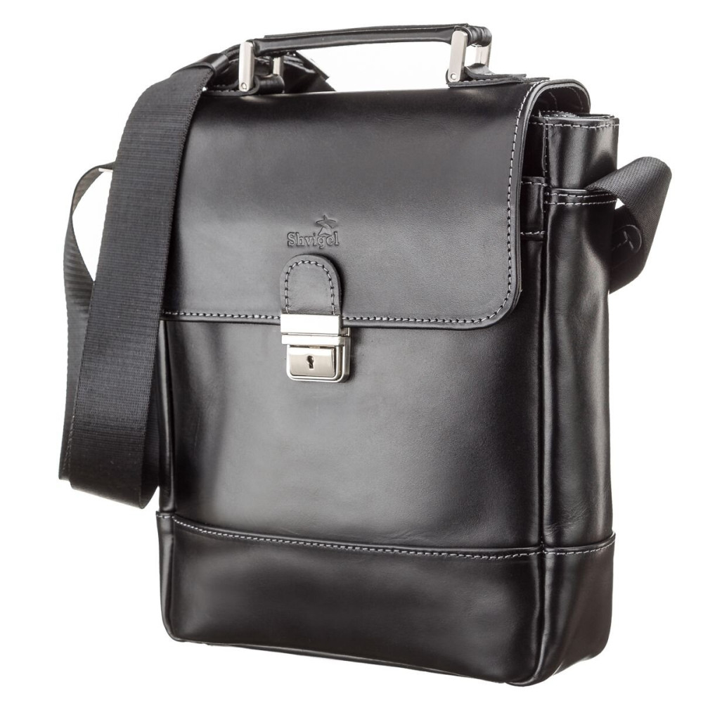Сумка чоловіча SHVIGEL 11123 шкіряна Чорна