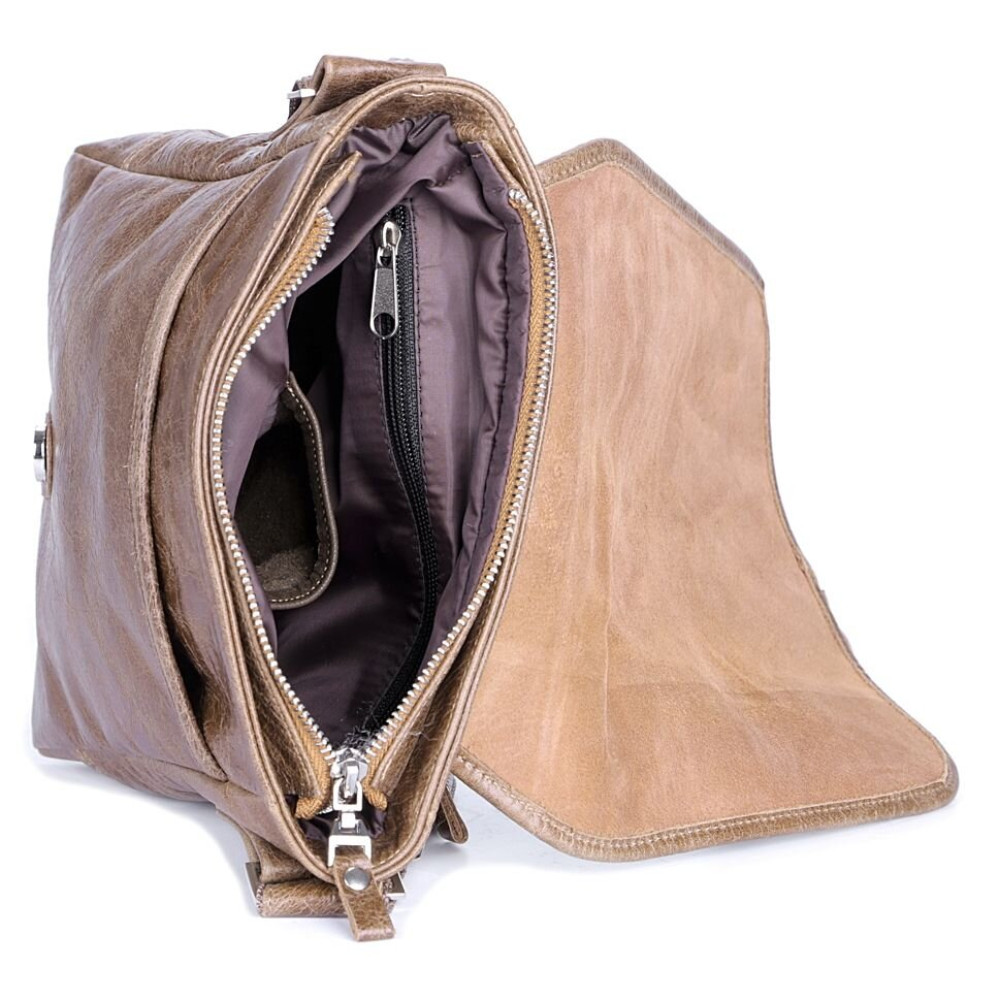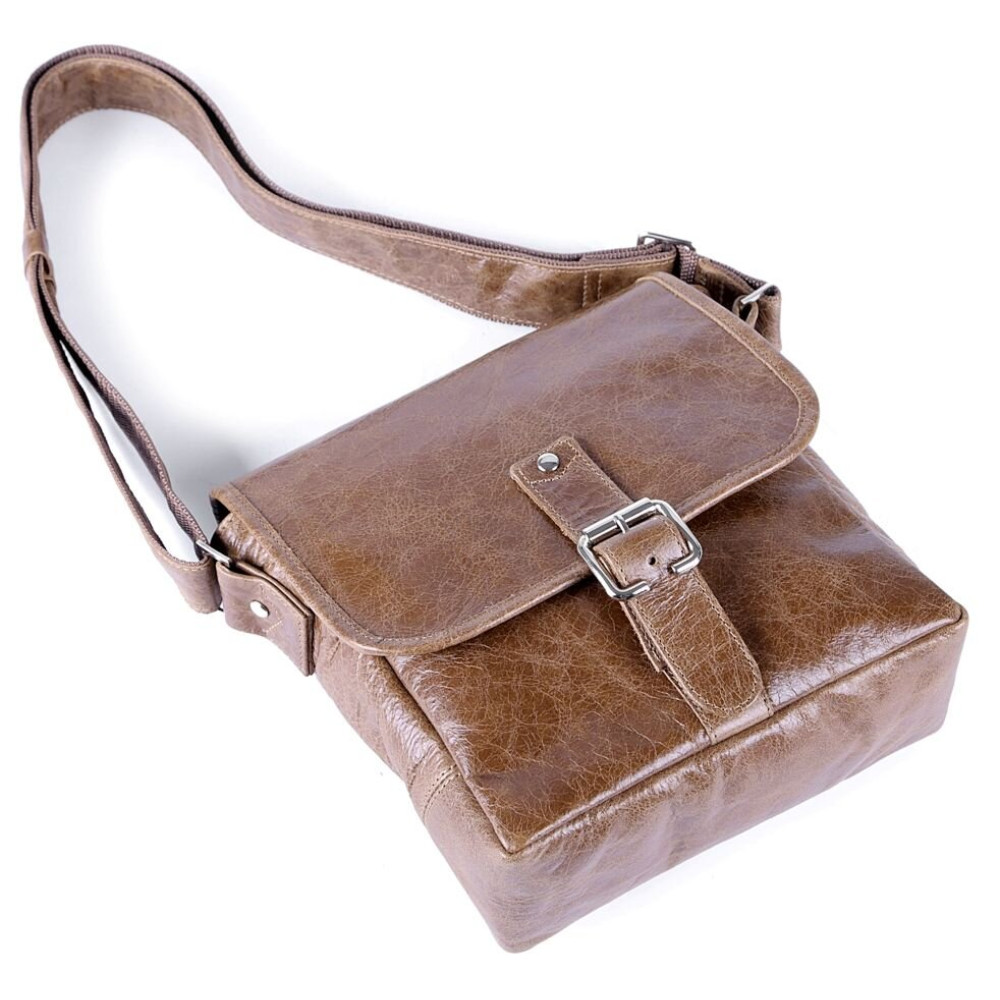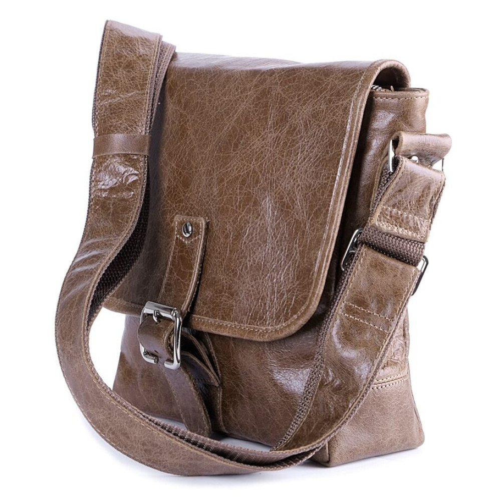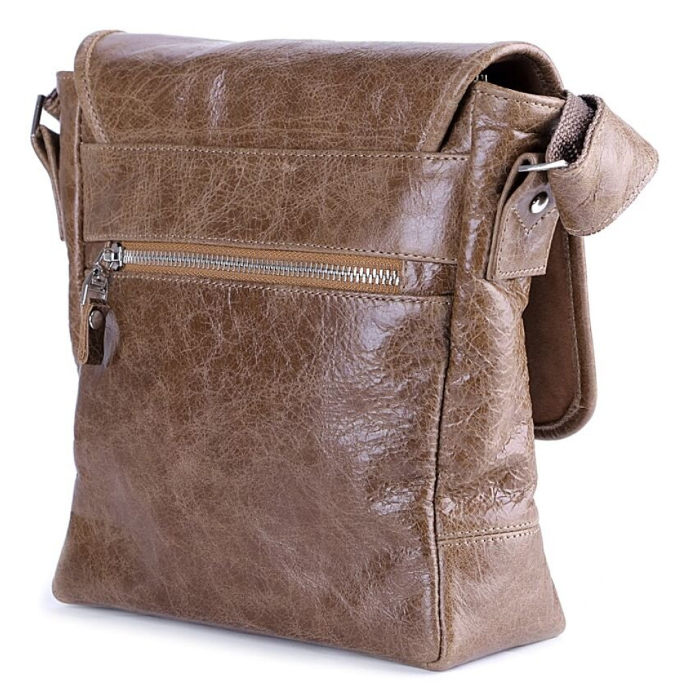 Високоякісна чоловіча сумка з натуральної вінтажної шкіри. Колір фурнітури: срібло. Сумка закривається за допомогою клапана на магнітній кнопці і металевої блискавки. Під клапаном розташована накладна кишеня. На задній зовнішній стороні аксесуара знаходиться невелике відділення на блискавці. Сумка носитися через плече за допомогою регульованого плечового ременя. Підкладка виконана з міцного текстильного матеріалу.