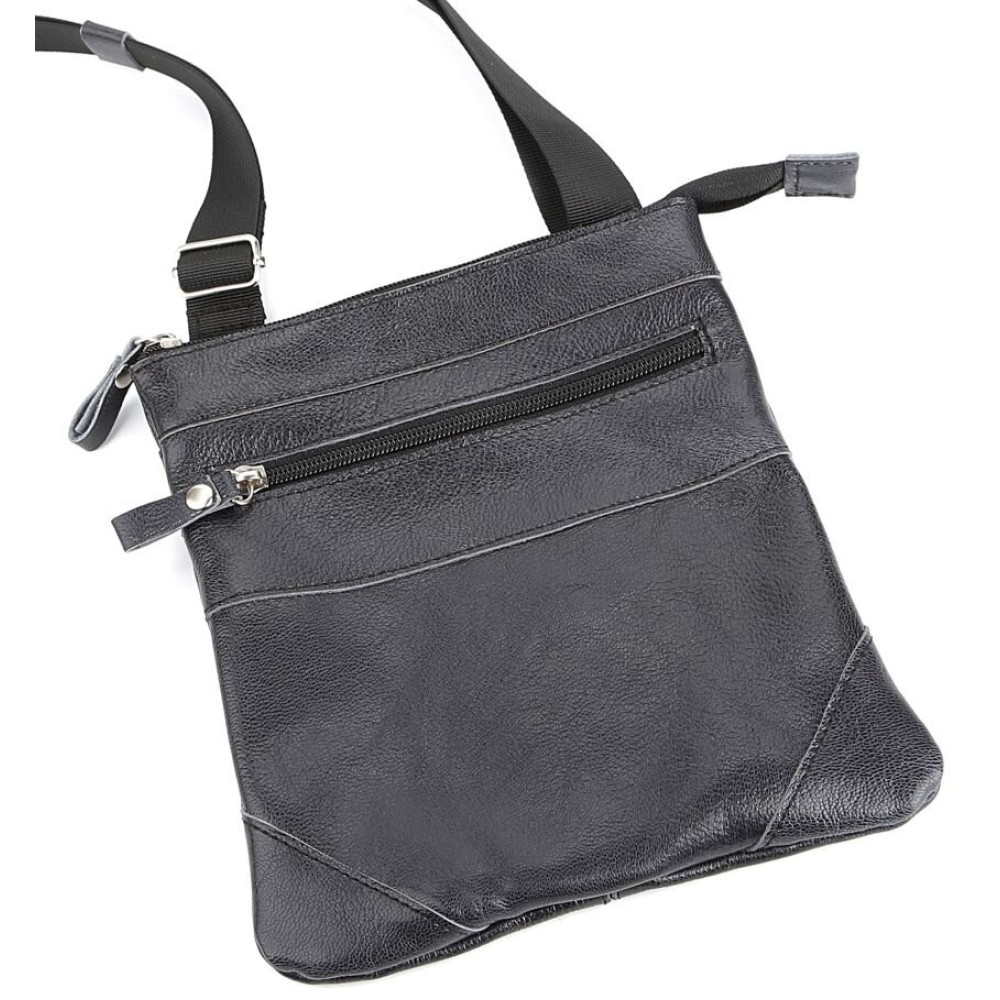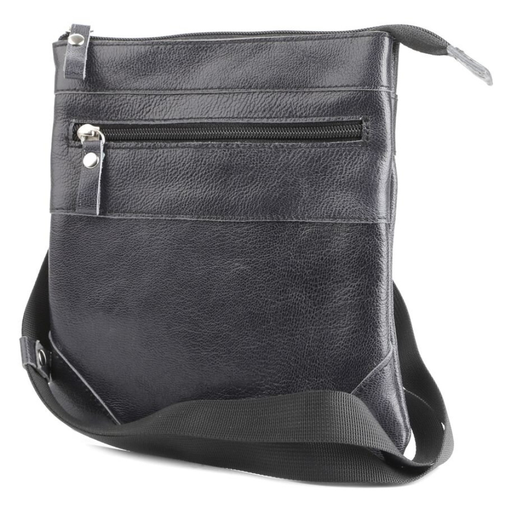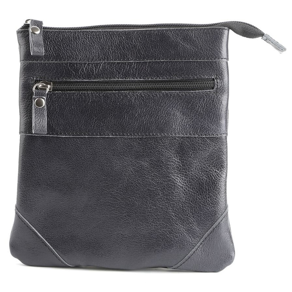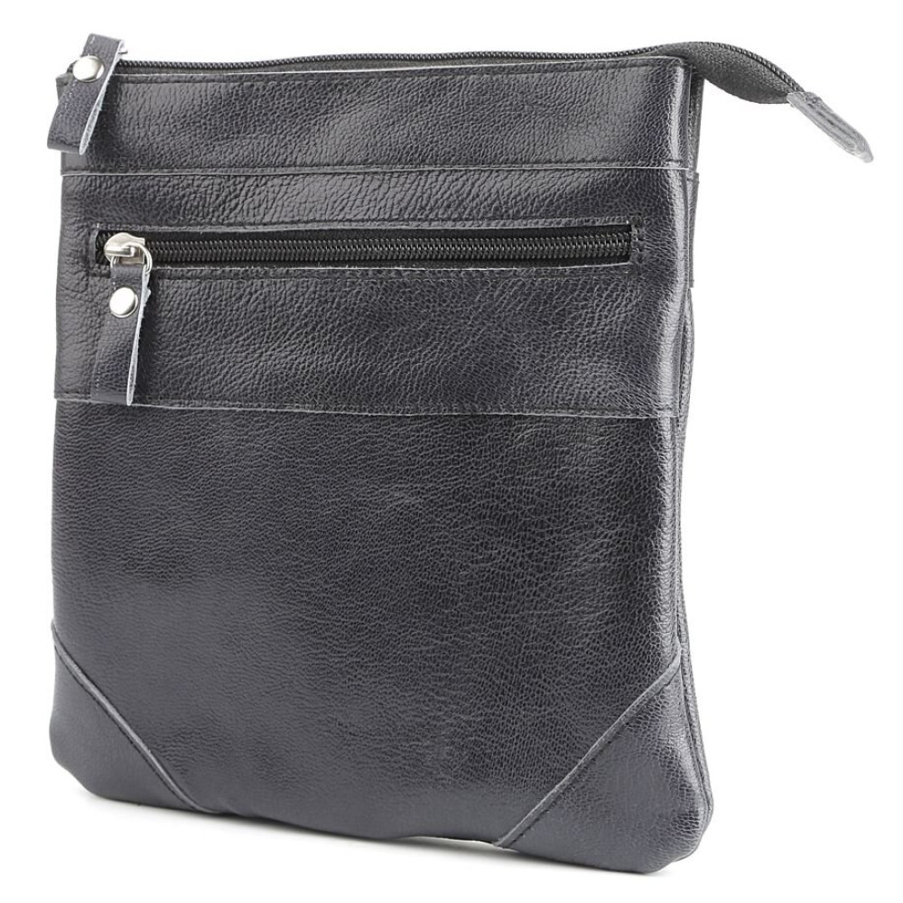 Недорога, але якісна шкіряна сумка, яка може використовуватися як чоловіками, так і жінками. У такий аксесуар з легкістю поміститися Ваш планшет. Колір фурнітури: срібло. На лицевій стороні розташоване відділення на блискавці. Сумка закривається за допомогою блискавки. Усередині одне вмістке відділення. Підкладка виконана з міцного текстильного матеріалу.