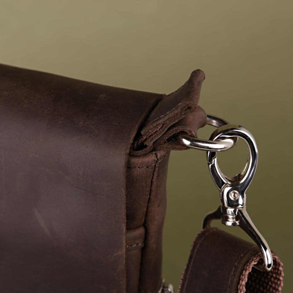 Сумочка носиться з допомогою ременя на карабінах, який виготовлений з якісної шкіри і текстильного матеріалу.