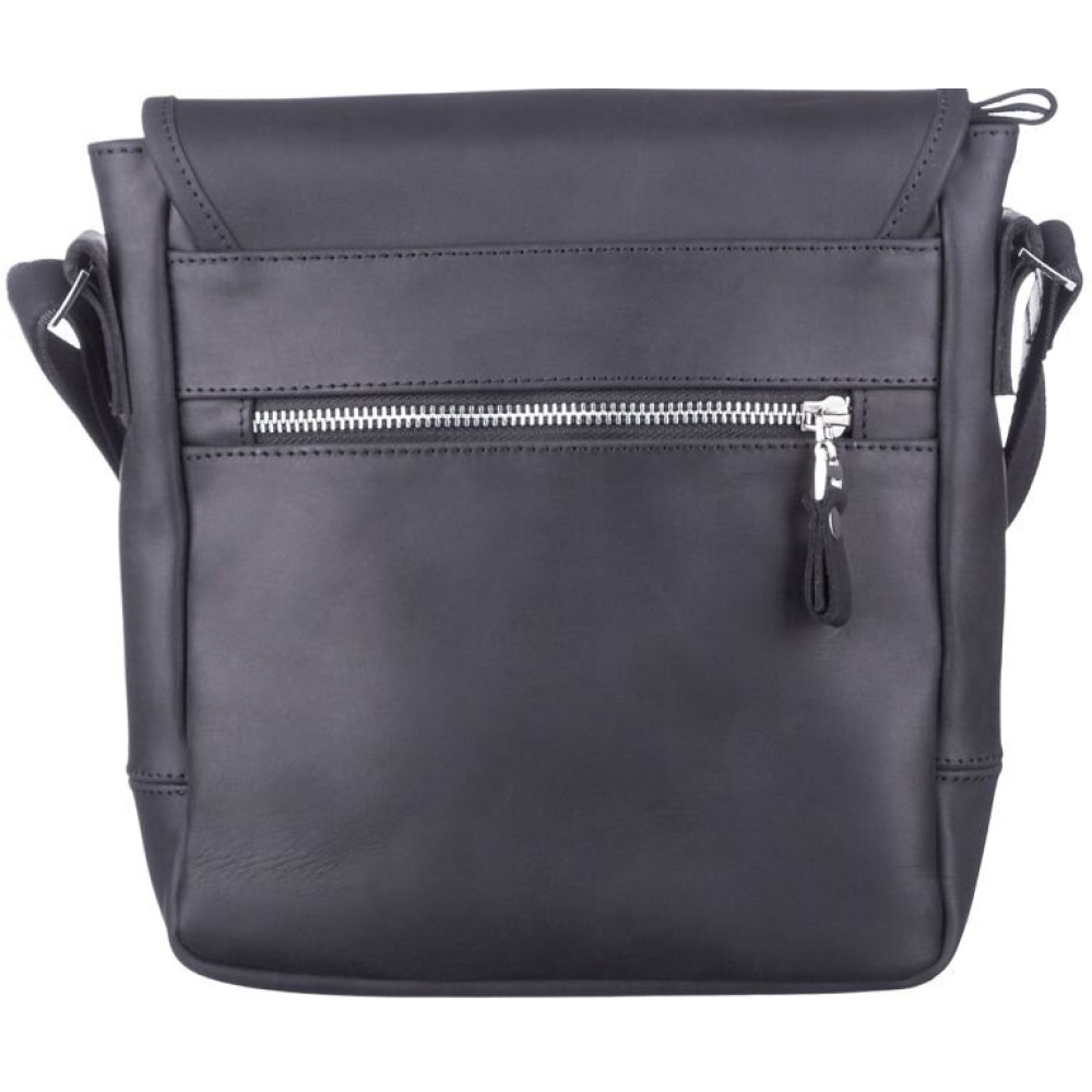 Ззаду на сумці розташований прорізна кишеня для дрібних речей. Закривається дана модель клапаном, обшитим по контуру міцною ниткою з декоративною пряжкою на магнітній кнопці.